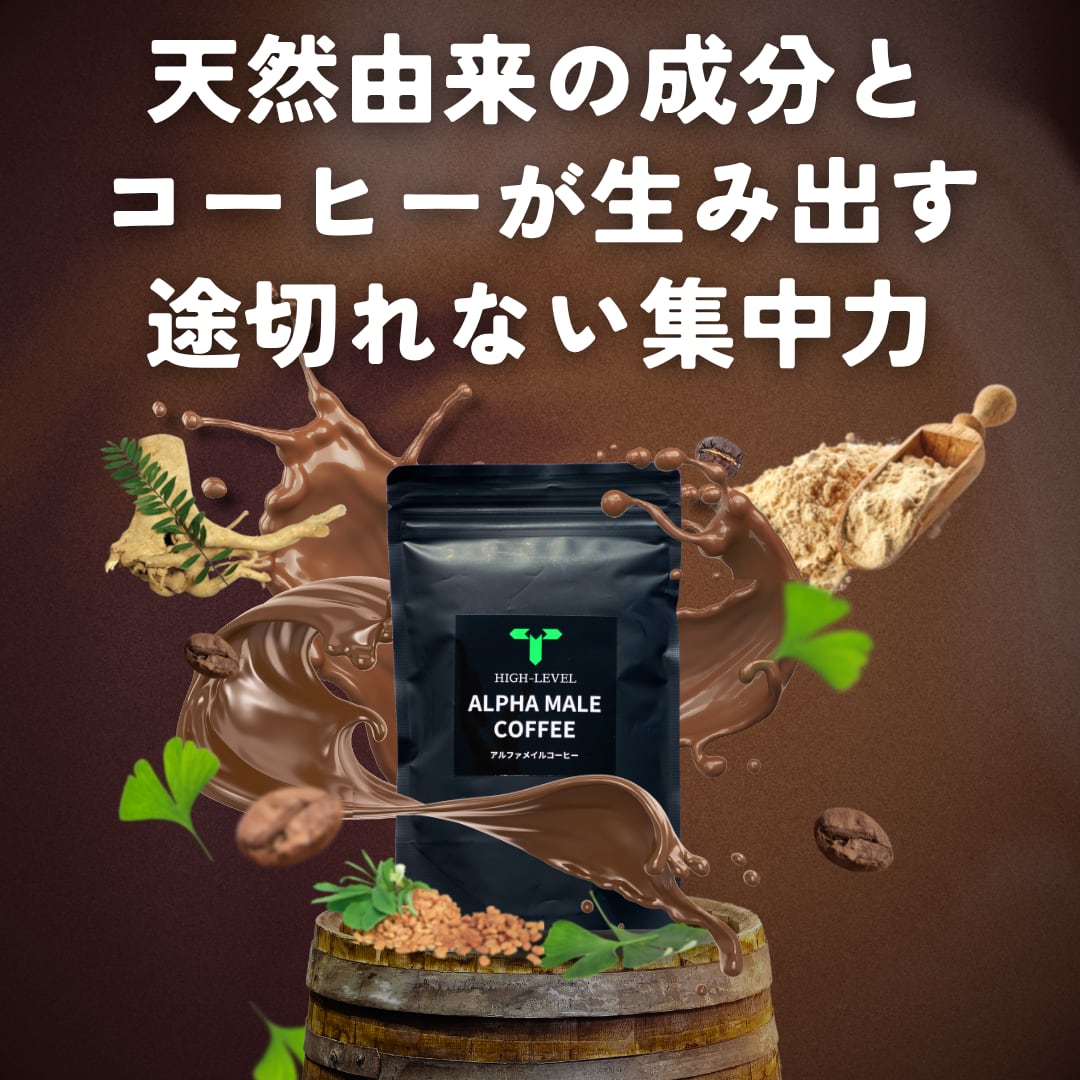 やめてしまった習慣にもう一度火を灯す。本気の朝を取り戻せ Alpha Male Coffeeは、すべての男性が“朝の習慣”を取り戻すために生まれたインスタントコーヒーです。かつては続けていた早起きや運動、読書、仕事前の準備時間。それらをやめてしまった原因の多くは、継続のきっかけを失ってしまったことにあります。 ✅Alpha Male Coffeeは、そんな“習慣の再起動スイッチ”として機能することを目指しています。 これは単なるインスタントコーヒーではありません。毎日飲みたくなる味と香り、そして飲むことで「今日もやるぞ」と思える精神的なリズムを整える存在です。配合されているのは、マカ、フェヌグリーク、トンカットアリ、イチョウ葉。いずれも、古くから活力や調和をもたらすとされてきた素材であり、日々の自己管理を後押しするために厳選されました。 内容量はたっぷり120g。長期間にわたって飲み続けられる仕様で、あなたの“習慣化”を邪魔しません。朝のコーヒーを楽しみに感じることで、自然と生活リズムが整い、モチベーションが高まっていくように設計されています。 「あなたを次のレベルに引き上げる」をブランド理念に掲げるHIGH-LEVELが手がけるこの製品は、ただの飲み物ではなく、自己規律を取り戻すためのツール。 ✅Alpha Male Coffeeは、男としての強さと自信を再び呼び覚まし、“本気の朝”をもう一度あなたのものにします。 ■ サイズ ・120gの大きめのパッケージです。 ■ 原材料 コーヒー(ブラジル産)、マカ、フェヌグリーク、トンカットアリ、イチョウ葉粉末 ■ お手入れ/取り扱い注意事項 ・ご使用の際は、適量をお好みの湯に溶かしてください。保存は直射日光を避け、湿気の少ない冷暗所をお勧めします。 ■ 発送・注文に関する情報や注意事項 ・ご注文いただいてから、通常4営業日以内に発送いたします。万が一在庫切れの場合は、随時お知らせいたしますのでご了承ください。 ■ その他の情報や注意事項 ・商品の色合いやデザインは、実際のものと多少異なる場合がありますが、ご理解いただけますと幸いです。 お問い合わせは、ショップのお問い合わせからお願い致します。 あなたを次のレベルに引き上げるALPHA MALE COFFEE アルファメイルコーヒーをぜひお楽しみください。